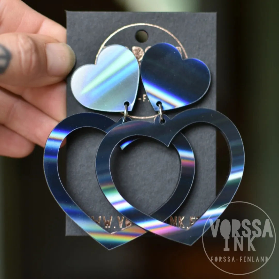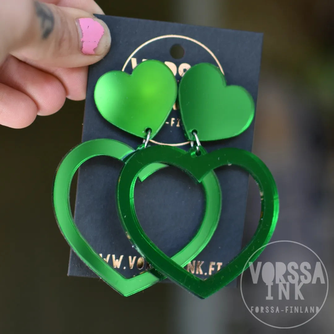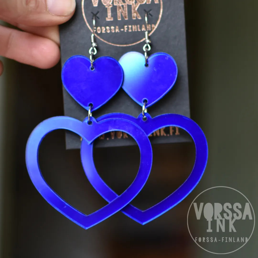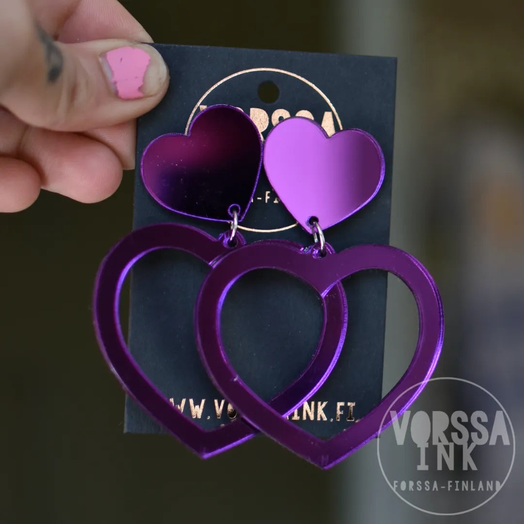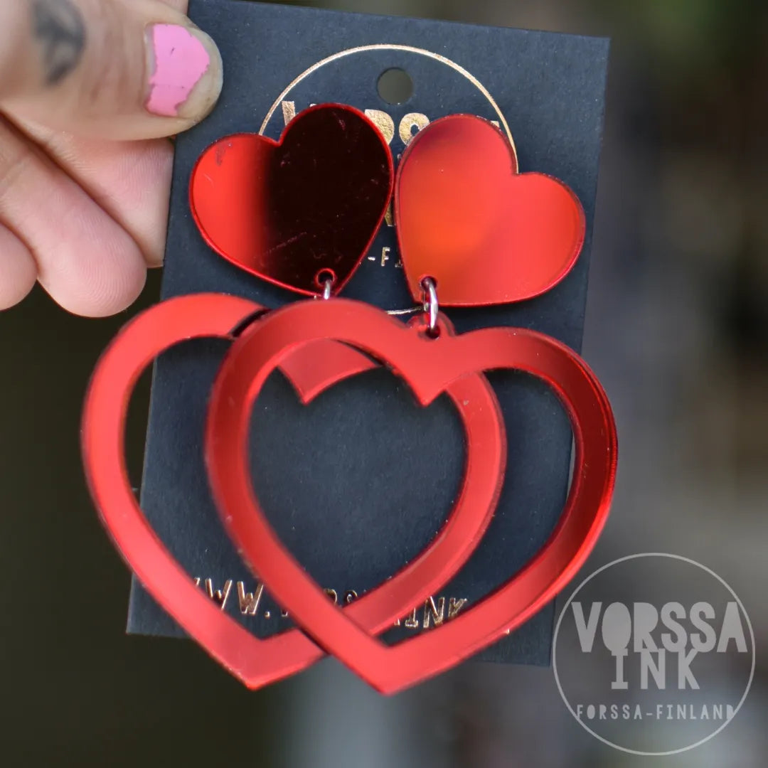 Näissä ihanissa sydänkorviksissa on tuplasti rakkautta ja asennetta! Isot korvakorut ovat erittäin näyttävät, mutta samalla kevyet ja mukavat käyttää.