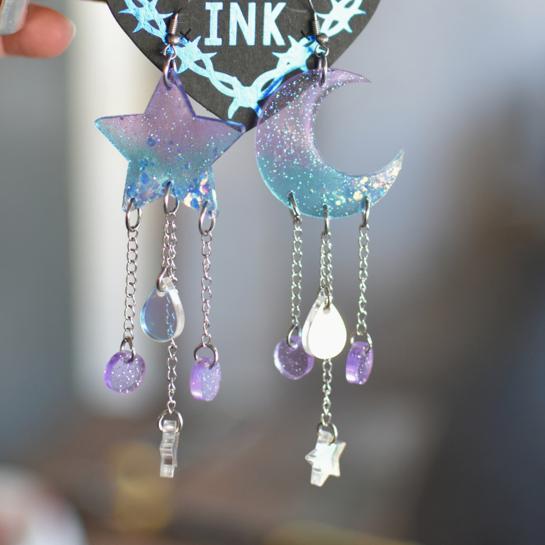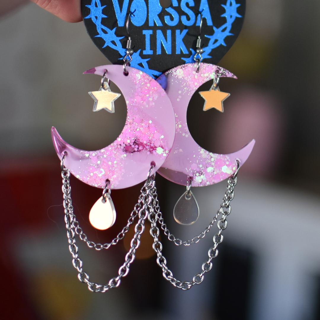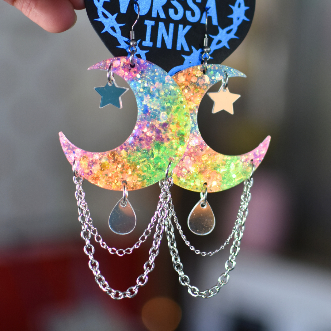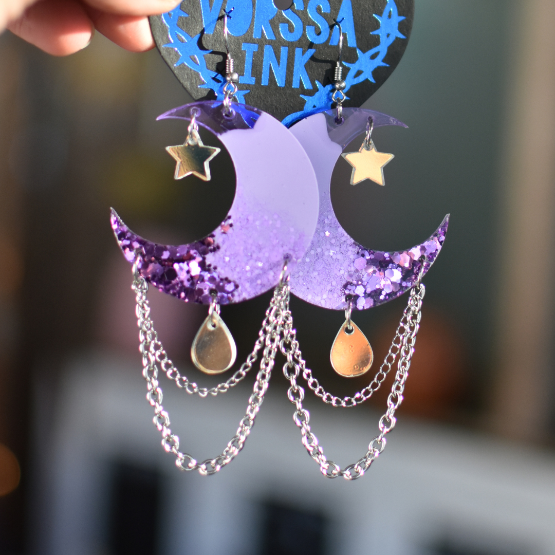 Kotimainen käsityö | Hypoallergeeninen kirurginteräs | Kevyet isot korvakorut | Kuukorut | Statement-korvakorut