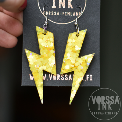 Näissä överi blingeissä salamakorviksissa on sähäkkyyttä ja asennetta! Salaman muotoiset korvakorut ovat erittäin näyttävät, mutta samalla kevyet ja mukavat käyttää.