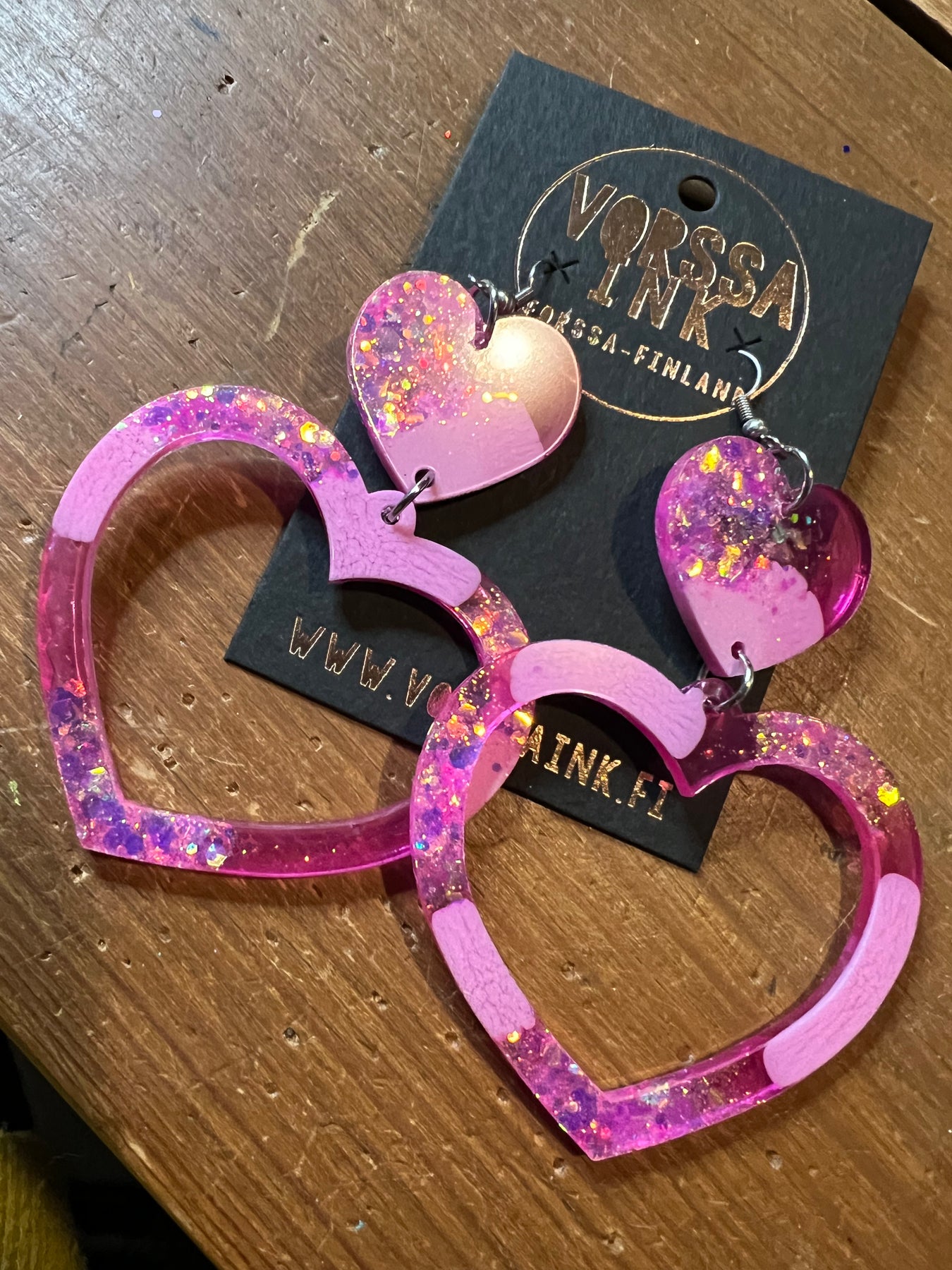 Näissä ihanissa sydänkorviksissa on tuplasti rakkautta ja asennetta! Isot korvakorut ovat erittäin näyttävät, mutta samalla kevyet ja mukavat käyttää.
