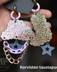 Yee Haw-korvakorut on valmistettu käsityönä, kauniista ja kevyestä akryylilevystä laserleikkaamalla. Näissä korvakoruissa on kaksi tasoa yhdistettynä toisiinsa.