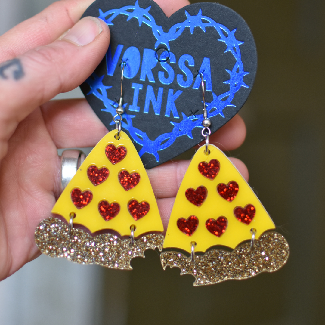 Vorssa Ink -korvakorut ovat isoja, värikkäitä ja näyttäviä. Tärkeintä koruissani kuitenkin on, että ne ovat samalla kevyitä ja supermukavia käyttää! Palkitsevinta on, kun näen korvakoruni oikeasti käytössä! Silloin tiedän, että joku on samaistunut sielunmaisemaani ja haluaa ilmaista persoonansa uniikeilla ja rohkeilla korviksilla.
