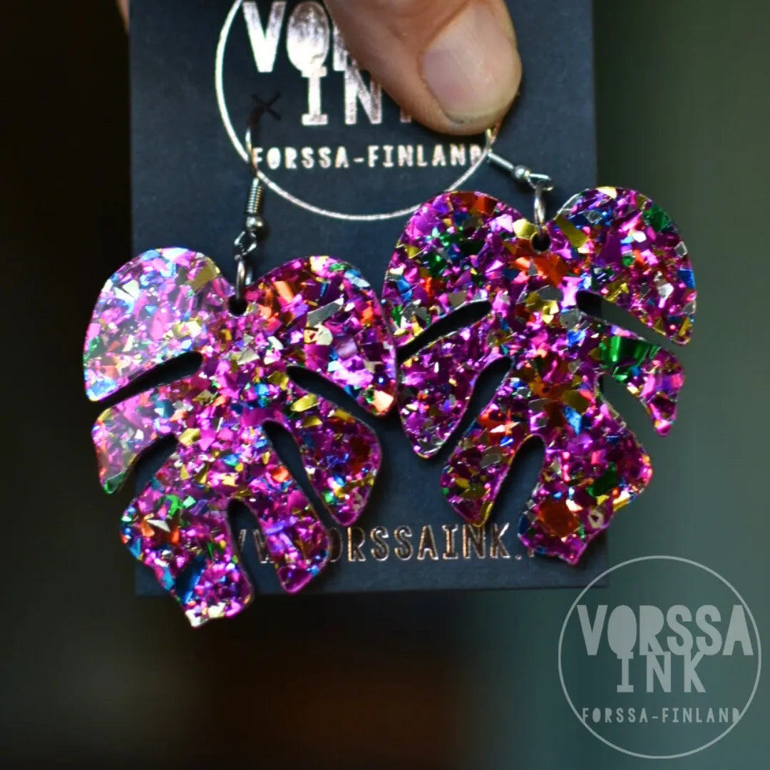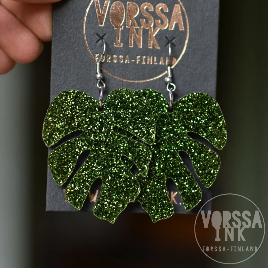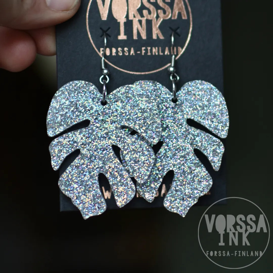 Kotimaiset Monstera -korvakorut ovat näyttävät ja kevyet, käsityönä valmistetut korvikset niin arkeen kuin juhlaan.
