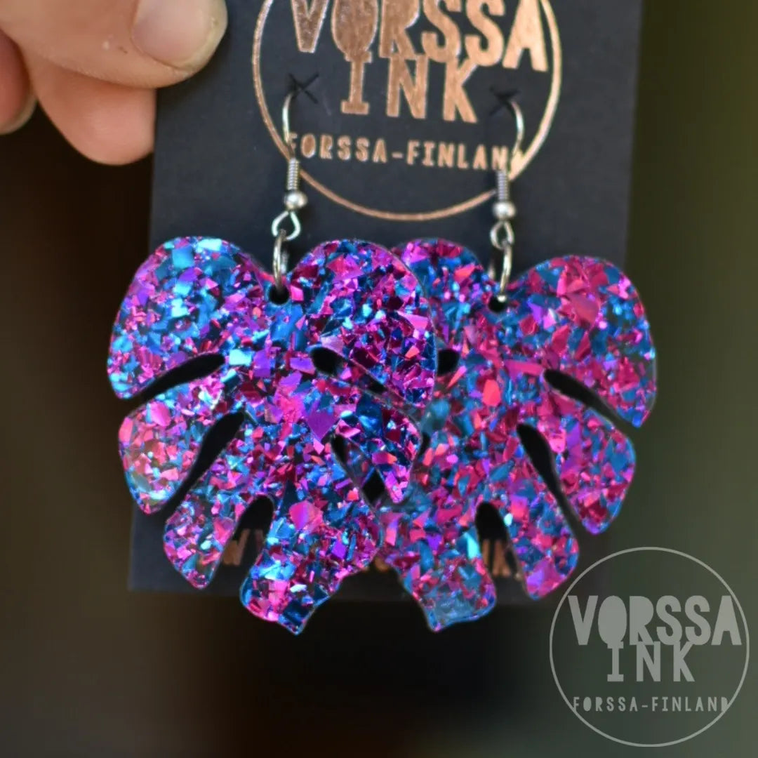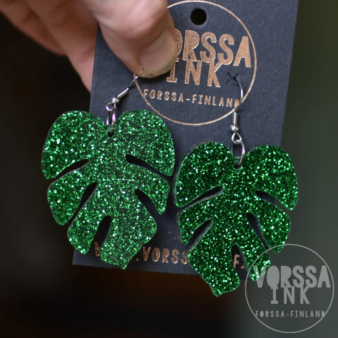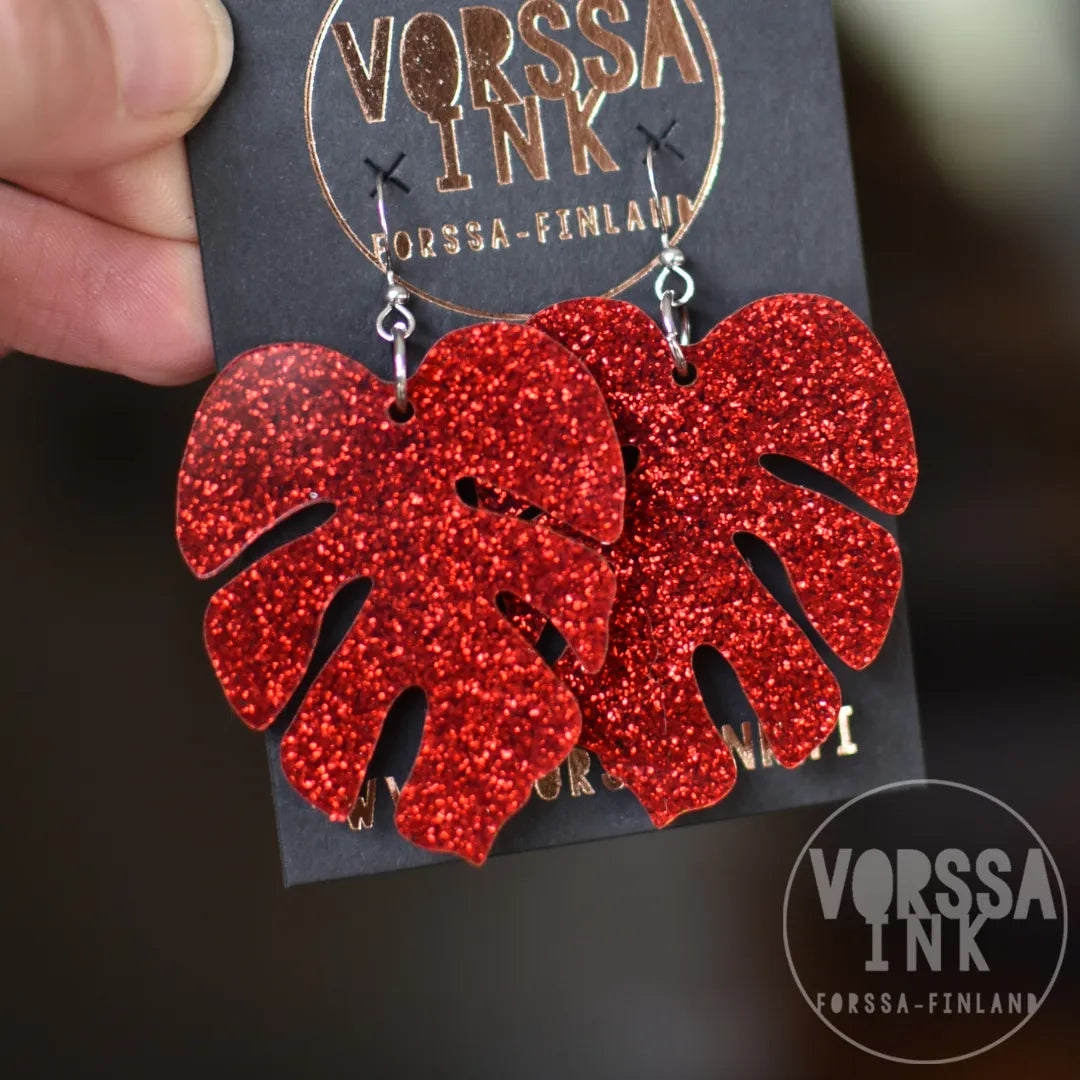 Kotimaiset Monstera -korvakorut ovat näyttävät ja kevyet, käsityönä valmistetut korvikset niin arkeen kuin juhlaan.