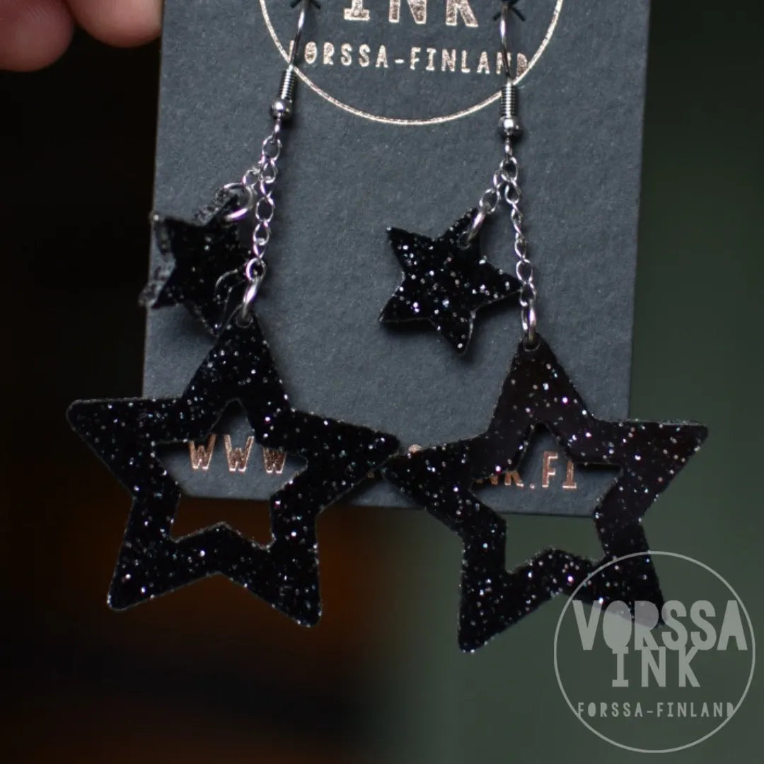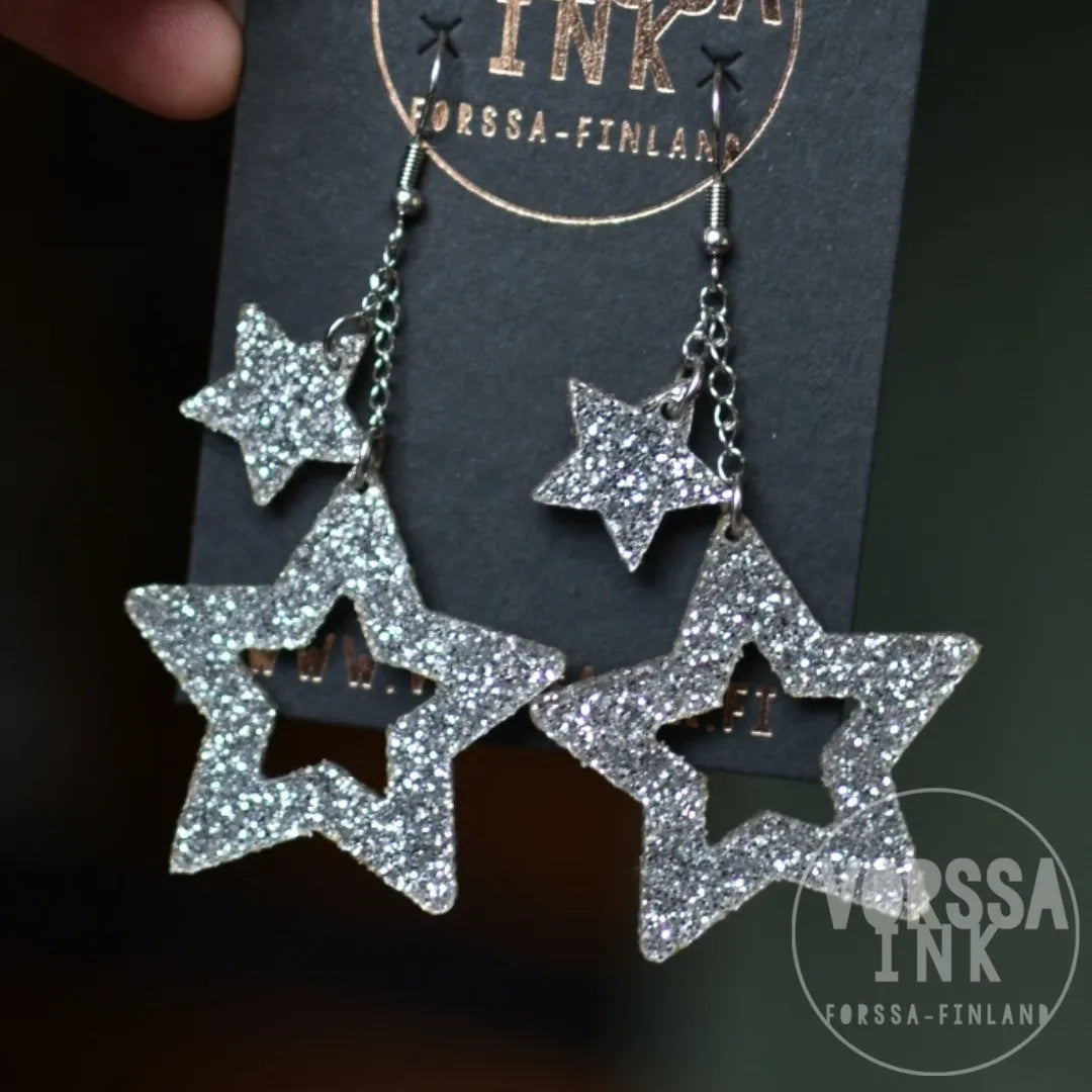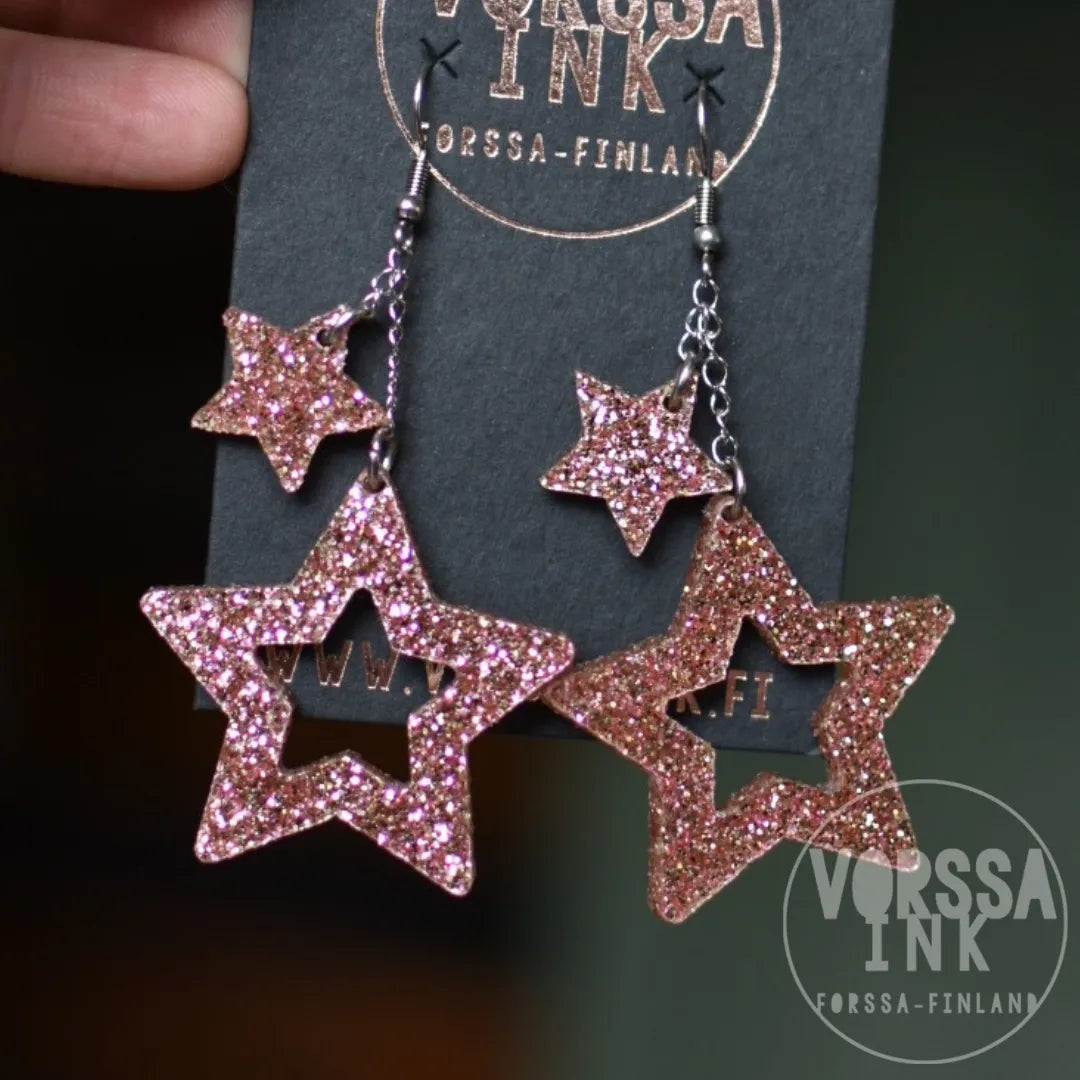 Näissä ihanissa tähtikorviksissa on tuplasti blingiä ja taianomaista asennetta! Kauniit korvakorut ovat erittäin näyttävät, mutta samalla kevyet ja mukavat käyttää.